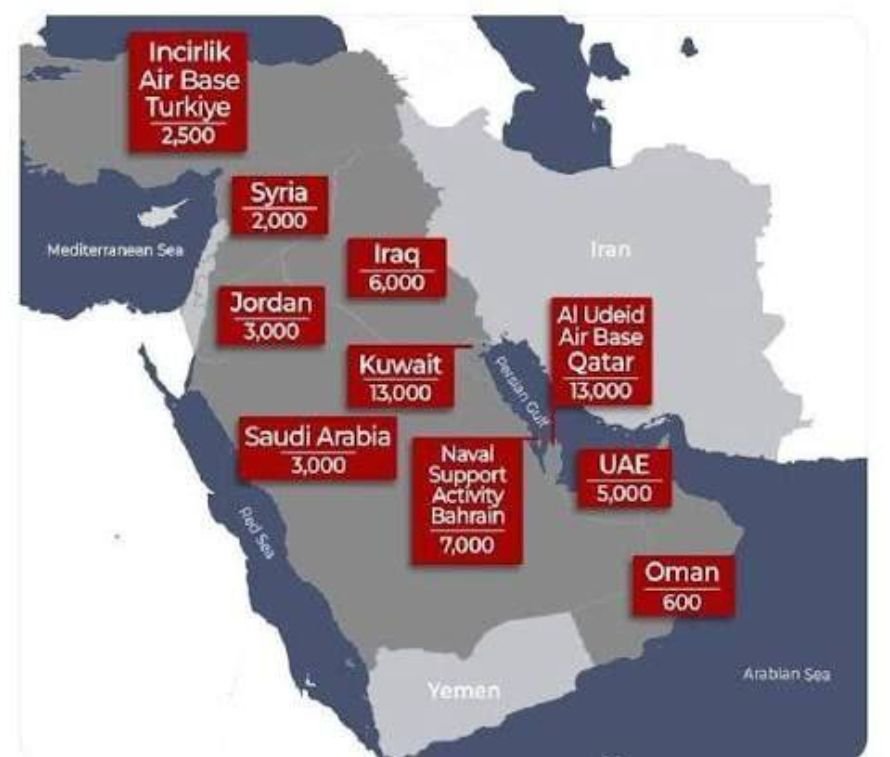 İran parlamentinin Milli Təhlükəsizlik Komitəsinin sədri İbrahim Əzizi Yaxın Şərqdəki ABŞ hərbi bazalarının xəritəsini dərc edib.Xəritədə ABŞ-nin Türkiyədəki “İncirlik” hərbi bazası da yer alıb.